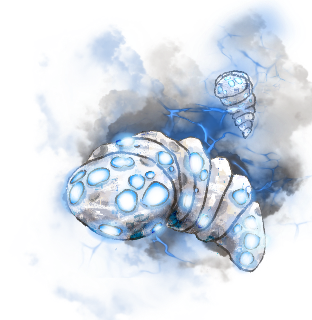 | Attacks 1x of the following: Thwack – 1d2 Leech Mana – Target must save against spells or randomly lose one of their lowest level currently memorized spells, taking 1d6 damage per level of the spell lost (usable only against targets with memorized spells). Leech Item – Targets one magic item adjacent to the mana leech. If multiple items are present (such as when worn by an adventurer) choose randomly. There is a 5% chance that the item is drained of some of its magical energy. Draining should generally take the item down one ‘tier’ of efficacy (+2 items becomes +1, +1 items become +0 and so on). When the drained effect is unclear, the GM is encouraged to introduce unreliability or some other quirk to the item’s function over rendering it entirely mundane. |